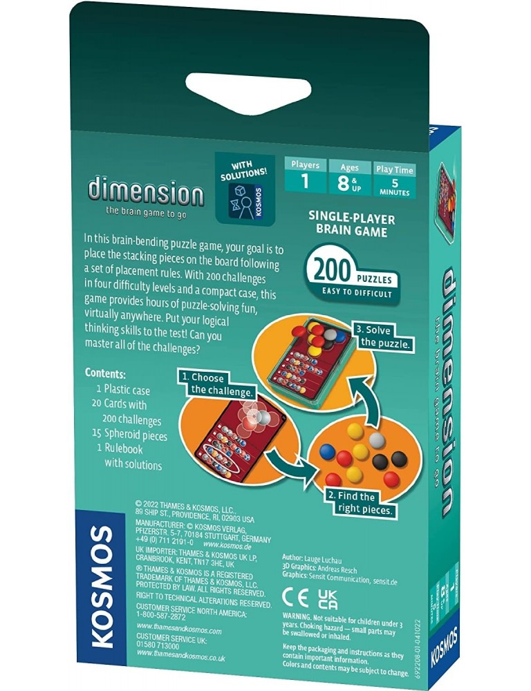 Vai atrisināsi visas 200 mīklas? Šajā mīklu spēlē tavs mērķis ir sakārtot figūras, kā parādīts uz kārts. Pat 4 grūtības līmeņi neļaus tev garlaikoties, un kompaktā spēles kaste ietilps mugursomā, rokassomiņā vai pat lielākā kabatā, lai tu varētu attīstīt kritisko domāšanu un vizuālo telpisko uztveri, lai kur tu dotos. Spēli var spēlēt viens pats, ar draugiem vai ģimeni. Vienkārši risini mīklas pēc kārtas, spēlējot spēli aplī.
