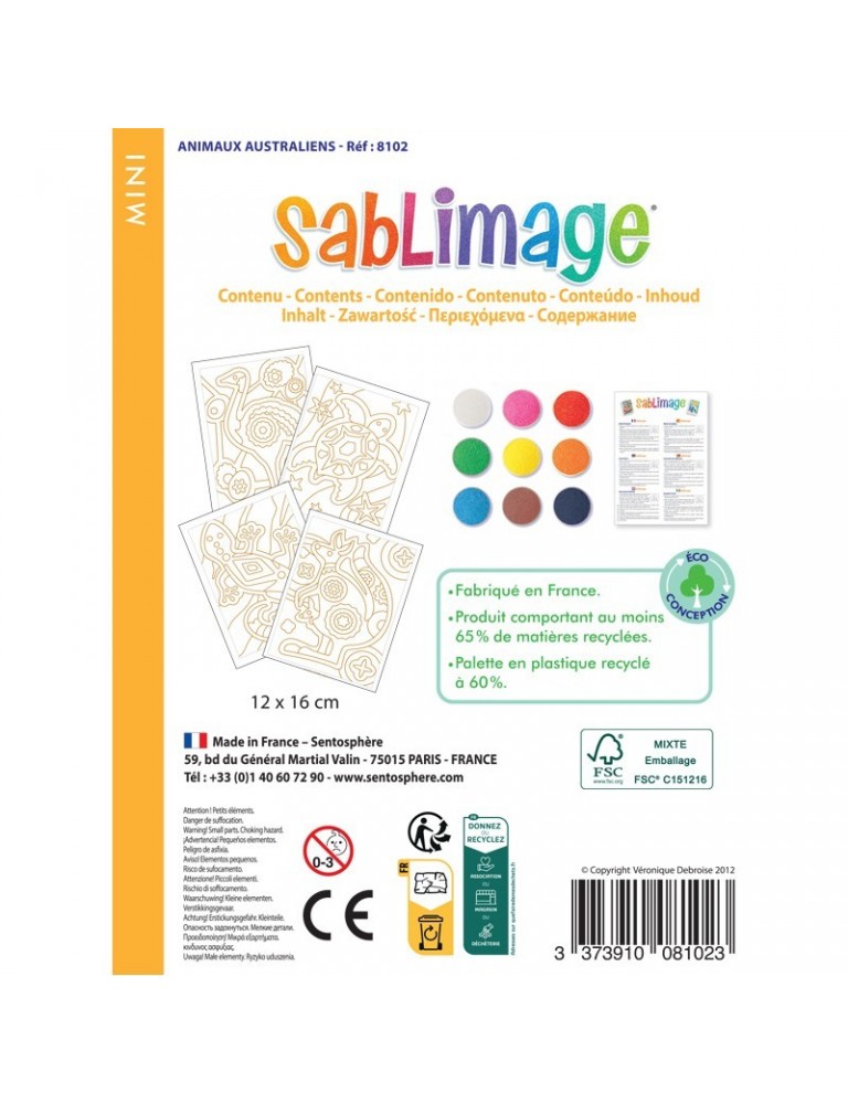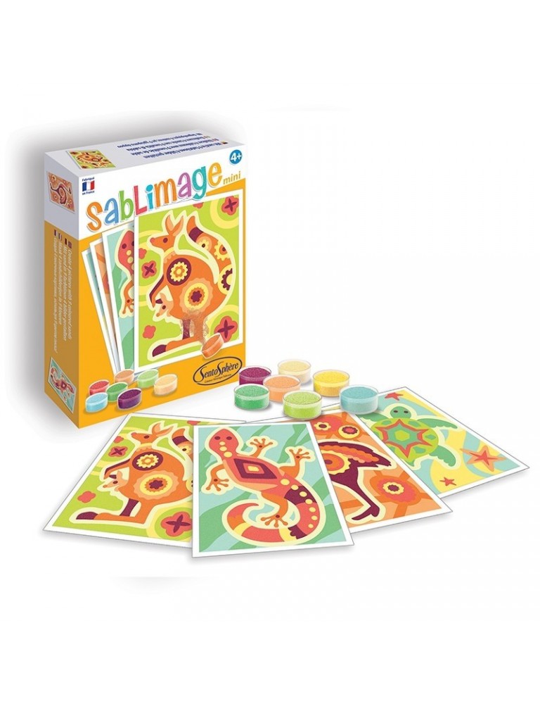 Izbaudi šo mini komplektu, lai radītu četrus smilšu mākslas šedevrus! Izmantojot 9 iekļautās smilšu krāsas, izklaidējies, krāsojot un pievienojot tekstūru šiem Austrālijas dzīvniekiem.