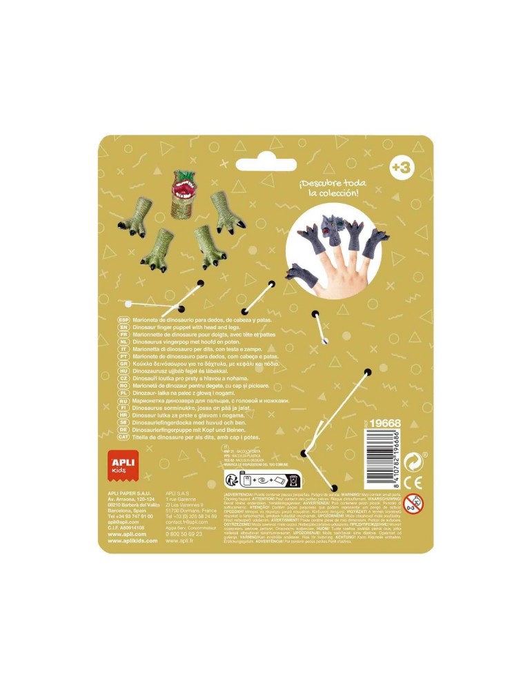 Draudzīgais Trex iekārtosies uz jūsu pirkstiem. Šis ir lielisks līdzeklis mācībām caur rotaļām. Lieciet dinozauram runāt, rēkt un dziedāt. Pirkstu lelles atklās bērna iztēli, attīstīs iztēli, veicinās koncentrēšanās spējas, palīdzēs izpaust emocijas. Tā kā tās aizņem maz vietas, varat tās ņemt līdzi, dodoties ciemos, piknikos, pastaigās vai spēlējoties peldoties.