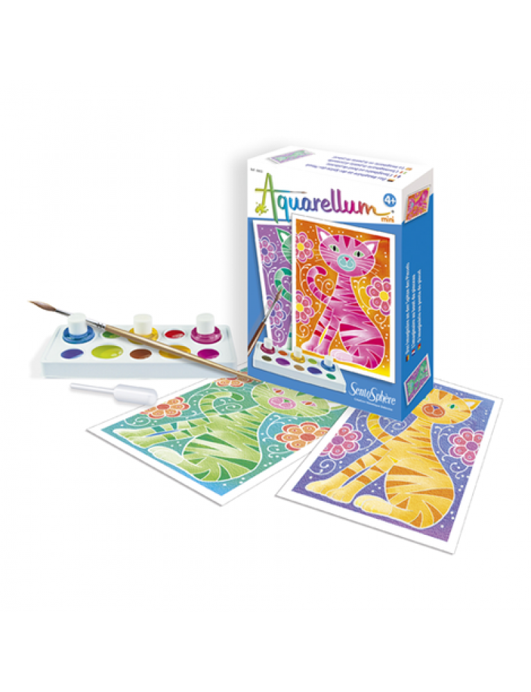 Mini akvareļu līnija tika radīta, lai iepazīstinātu ar labi zināmu gleznošanas tehniku, kurā zīmējuma līnijas neļauj krāsām saplūst. Izmantojot trīs krāsas, kuras var sajaukt kopā, var izveidot ļoti plašu krāsu gammu, kas palīdzēs gleznot pārsteidzošas gleznas. Divi trafareti atmodinās radošumu un pavērs durvis uz krāsu pasauli.