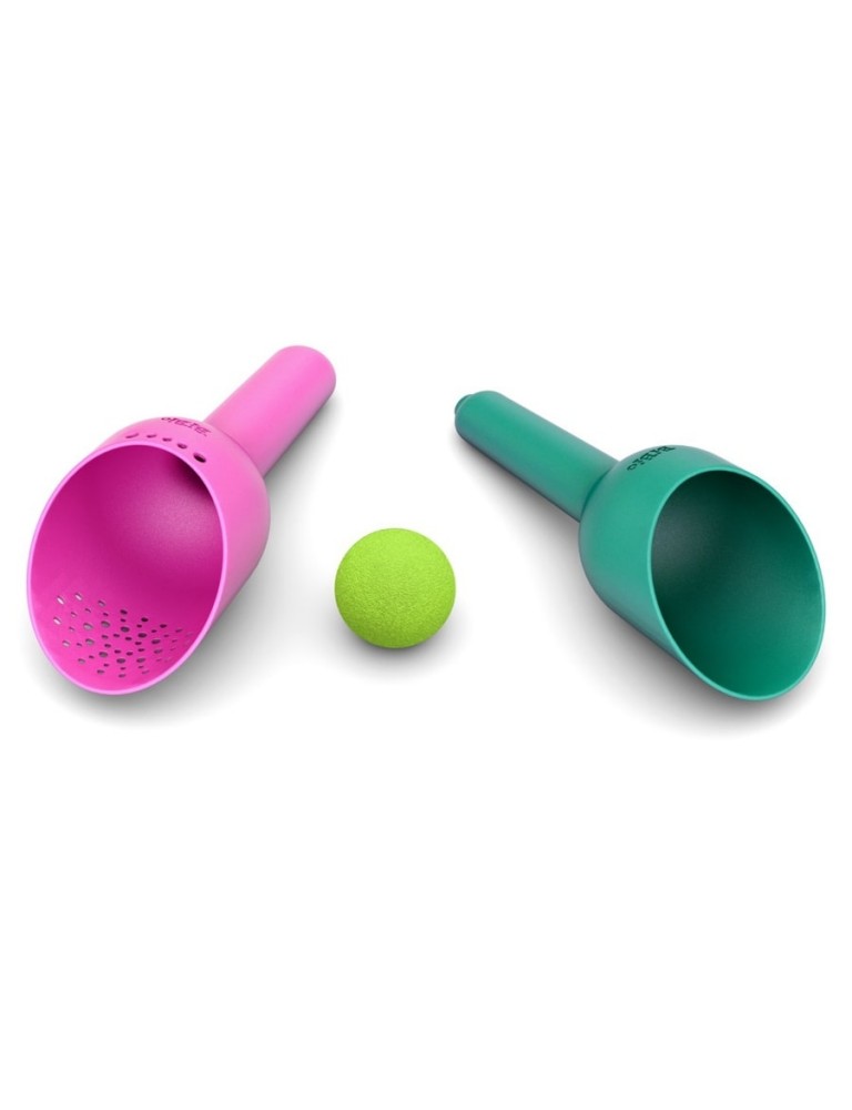 Rotaļlieta sastāv no trim elementiem: lāpstas, sieta un bumbiņas. Unikālas un ergonomiskas formas ļauj apvienot komplektu vienā, tāpēc viss aizņem maz vietas – tas ietilps pat nelielā mugursomā!