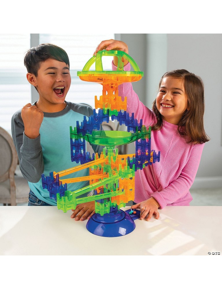 Telpiskā domāšana un plānošana: Būvējot trasi, bērni iemācās domāt trīs dimensijās un plānot, kā savienot detaļas, lai bumbiņas ripotu vēlamajā virzienā.