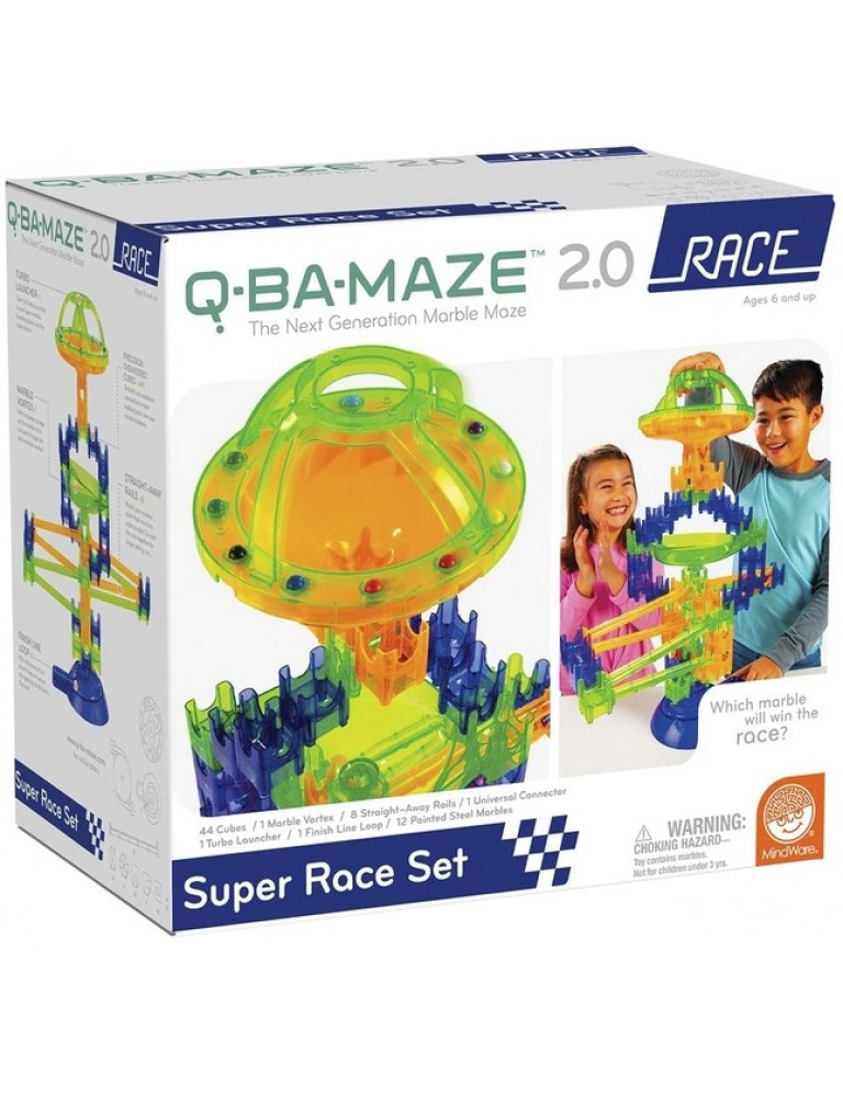 Ar šo uzlaboto klasiskā Q-Ba-Maze STEAM konstruktora versiju notiek īstas sacīkstes līdz finiša līnijai! Uzbūvē savu labirintu, izvēlies krāsainu bumbu, pagriez palaišanas iekārtu un ļauj visām bumbām sacensties par pirmo vietu. Ar neona krāsām un jaunām, ekskluzīvām detaļām šī bumbu ripināšanas spēle ir ideāli piemērota grupu spēlēm un sacensībām vai arī spēlē vienatnē un mēģini uzminēt, kura bumba uzvarēs.
