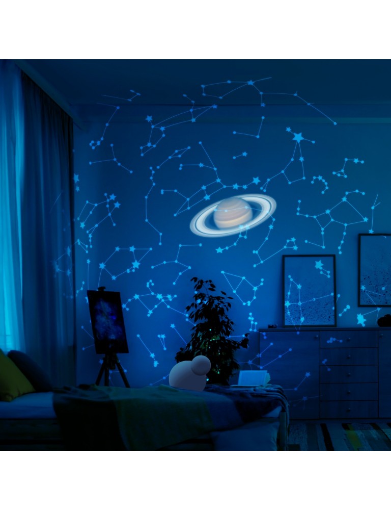 Zvaigžņotās debesis ir tur, kur jūs atrodaties! Izgaismojiet tumšas telpas sienas un griestus ar nakts debesu projekcijām un kosmosa tematikas attēliem. Planetārijā pat ir divi projektori vienā. Pirmais ir rotējošs zvaigžņu kartes kupols, kas attēlo astronomiski precīzas zvaigžņu kartes; projektors ietver zvaigžņu kartes gan ziemeļu, gan dienvidu puslodei. Otrais projektors attēlo ar kosmosu saistītus attēlus, tostarp visas astoņas planētas, astoņus cilvēka radītus kosmosa objektus, piemēram, raķetes un satelītus, un astoņas ekstragalaktiskas parādības, piemēram, miglājus un galaktikas. Lielisks STEM rīks tiem, kas interesējas par kosmosu vai vēlas uzzināt vairāk par to. Vai arī tiem, kas vienkārši vēlas katru nakti sapņot zem zvaigžņotām debesīm.