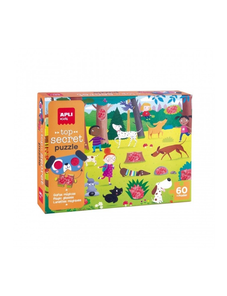 Vai esat kādreiz mēģinājuši paskatīties uz pasauli caur burvju brillēm? Ar šo īpašo puzli "Slepenie suņi" mazie ne tikai varēs salikt jautru attēlu, bet arī atklāt slēptus noslēpumus! Uzlieciet burvju brilles un atklājiet, kas slēpjas sarkani iekrāsotajās vietās.