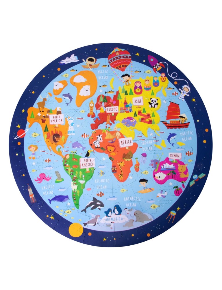 Kad puzle būs salikta, bērni atklās mūsu planētas dažādos kontinentus un okeānus. Puzle, kas palīdz bērniem iepazīt planētu Zeme.