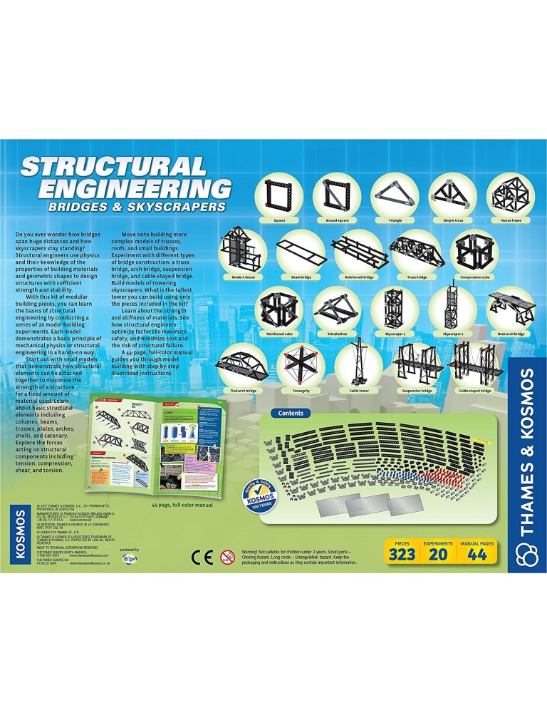 Ar šo modulāro būvdetaļu komplektu jūs varat apgūt izturīgas konstrukciju inženierijas pamatus. Modeļu būvniecības eksperimenti palīdzēs jums izprast fizikas likumus un sarežģīto un pārdomas rosinošo tiltu, pastiprinātu konstrukciju vai augstu ēku būvniecības procesu. Katrs modelis praktiski demonstrē kādu mehāniskās fizikas vai konstrukciju inženierijas pamatprincipu. Izmēri: 37 x 7,8 x 29,21 cm