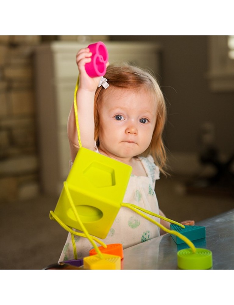 Sešas spilgtas, teksturētas figūriņas nekavējoties piesaista jūsu mazā uzmanību. Tās ir izgatavotas no 100% pārtikas kvalitātes, BPA nesaturoša silikona, tāpēc tās ir mīkstas, elastīgas un pilnīgi drošas pieskarties, saspiest un pagaršot, īpaši zobu nākšanas laikā. Un labākais ir tas, ka katra figūriņa ir droši piestiprināta pie kuba stūra ar īsu, bet izturīgu aukliņu. Tas nozīmē, ka nav jāuztraucas par pazaudētām detaļām un ir vairāk jautrības izpētē!